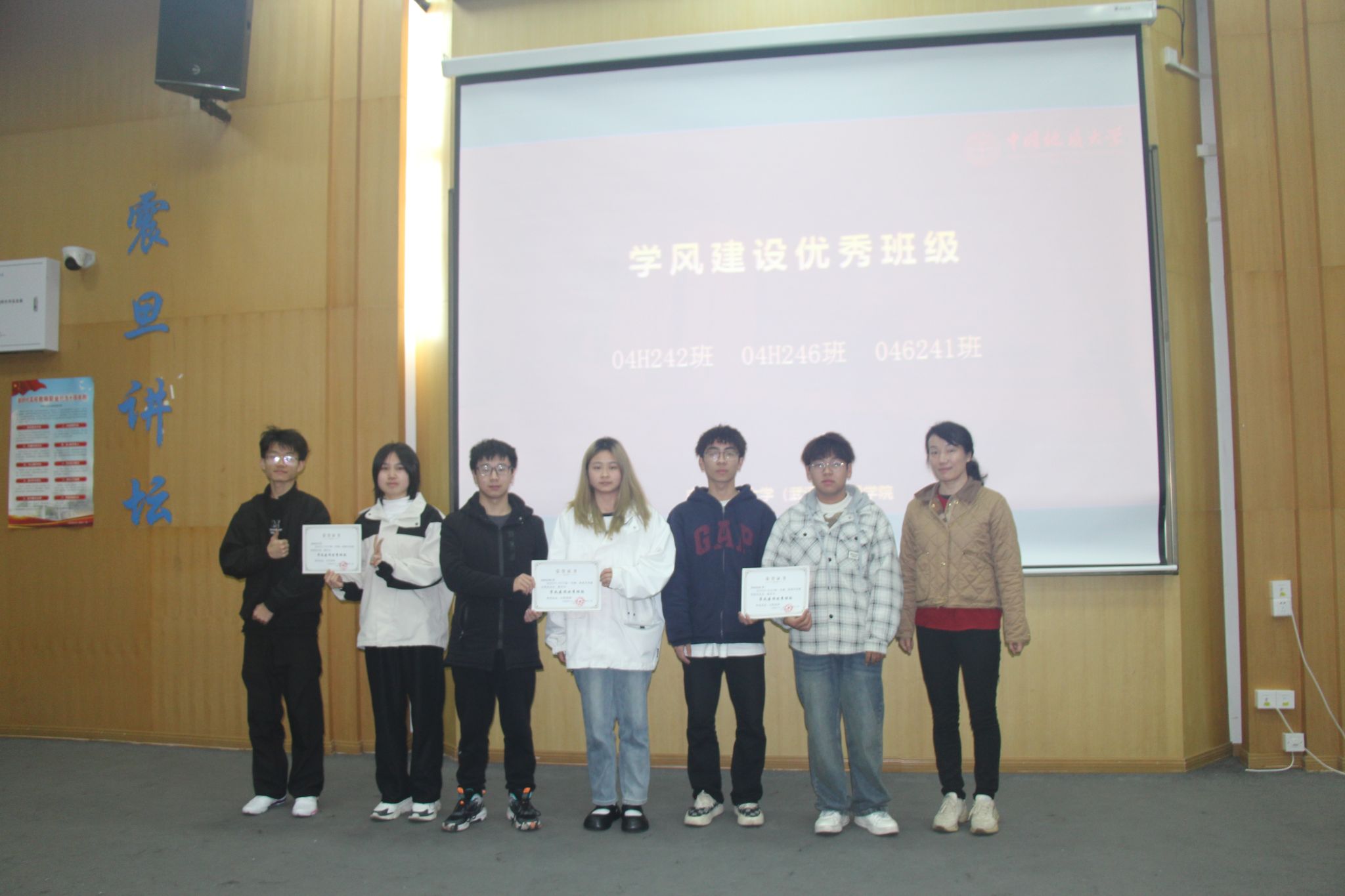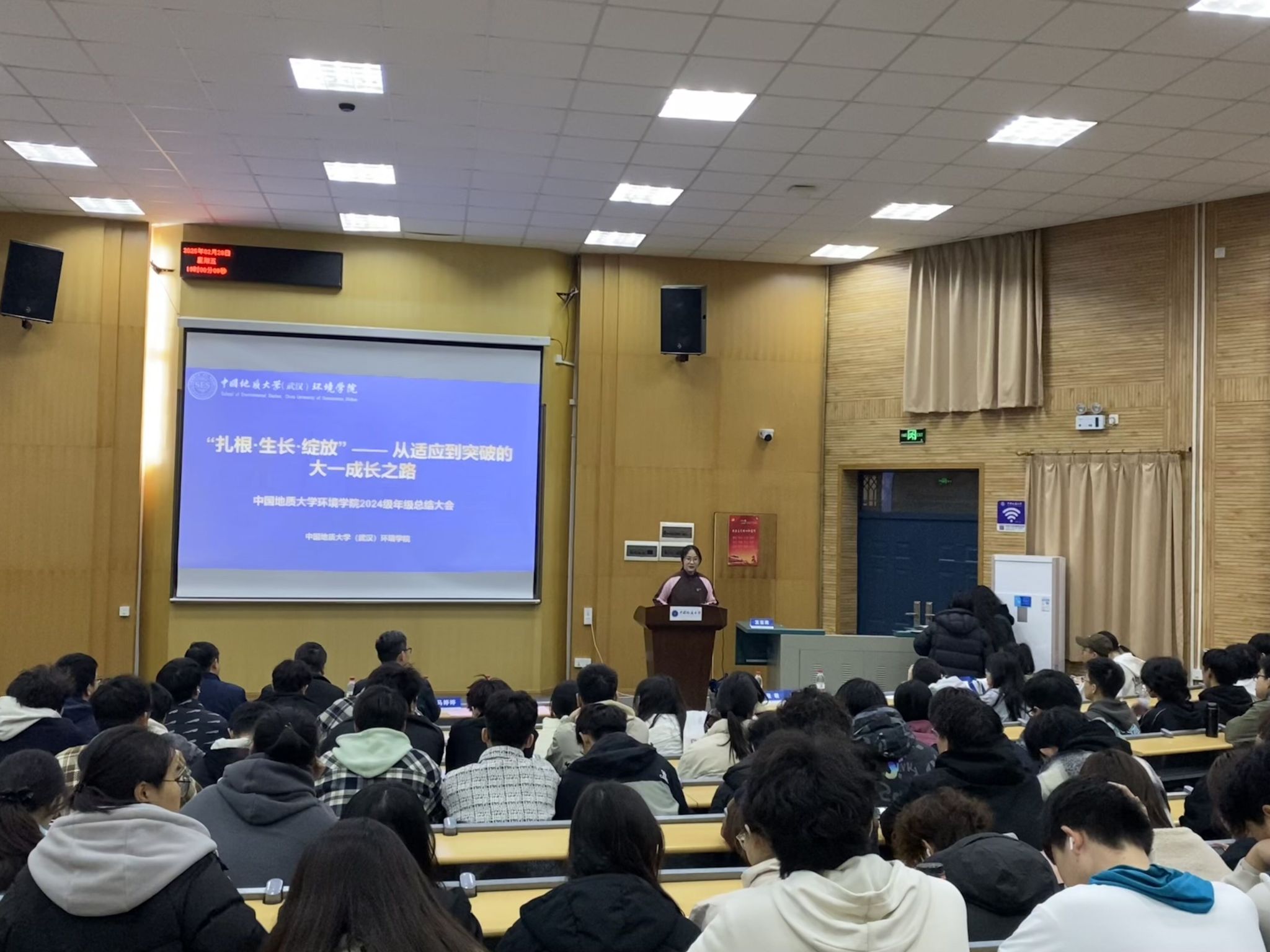(通讯员宋霖、张朝 编辑王孟雪)2025年2月28日,中国地质大学(武汉)beat365中文官方网站2024级本科生年级总结表彰大会在教三楼109室举行。本次会议的主题是“扎根 生长 绽放”,从适应到突破的大一成长之路,旨在通过总结学期工作、分享学习经验、表彰优秀学生,为同学们的未来学习和生活指明方向。学院党委副书记王海锋、学校安全保卫部法律援助办主任魏景明、班主任代表潘欢迎、鲁小璐、辅导员宋霖及高年级学生代表出席会议,2024级全体本科生参加会议。2024级本科生辅导员宋霖主持会议。