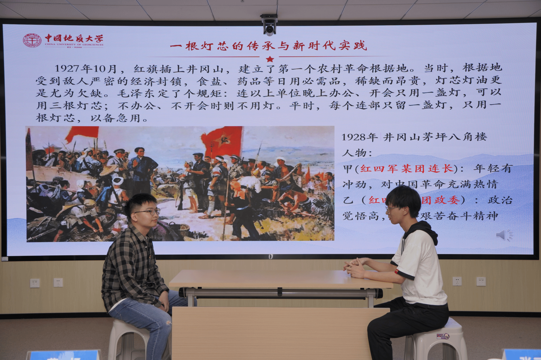 主持人介绍本次活动规则,学生党支部依次进行展演,展演内容由支部风采展示和微党课展演两部分组成。环境污染物识别与风险控制研究生第二党支部、新能源学院学生党支部、水文专业大学生党支部、环境工程专业大学生党支部、地质环境保护与生态修复研究生党支部依次进行展演。