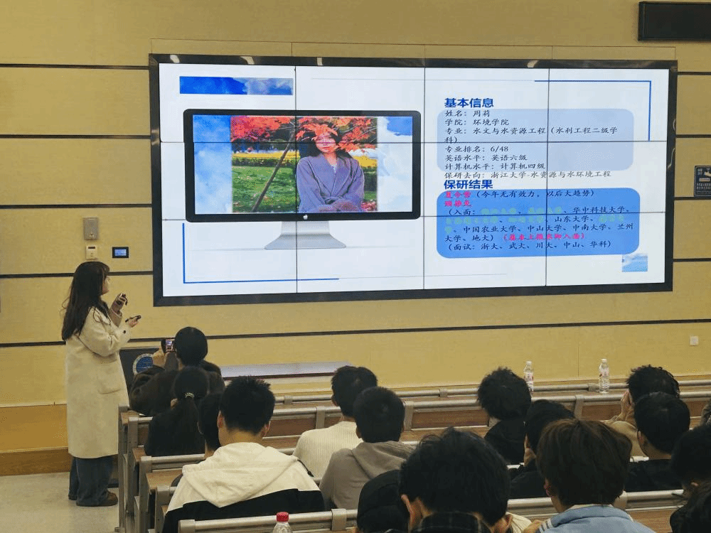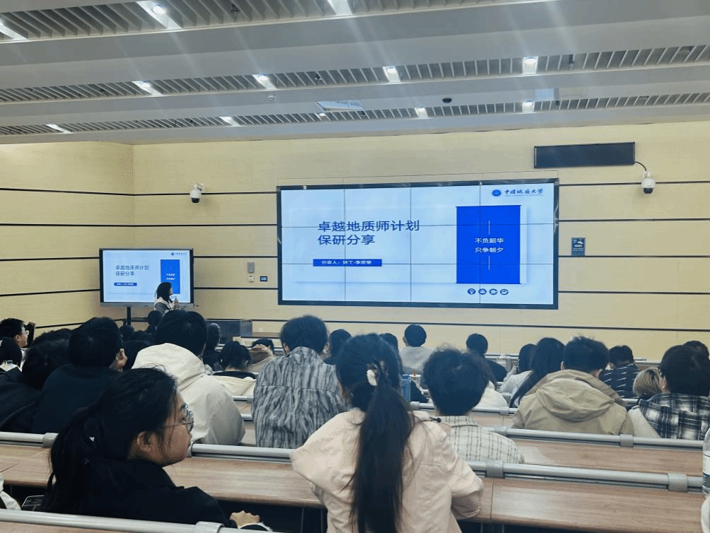 为帮助2024级同学提前厘清未来发展方向,大会邀请多位高年级优秀学生代表,系统分享了多元化的保研与深造路径。2022级本科生付笠洋同学详细解读了学院常规推免的具体流程、时间节点与关键材料准备;2025级研究生杜加明同学则对学校的“本-硕-博”贯通培养计划进行了专业解读;2022级的周莉详细介绍了“高徒计划”;李常荣同学分享了“卓越地质师计划”的经验;此外,冯雪岚、赵佳、葛慕三位同学也通过线上视频,带来了“支教保研”与“创新人才计划”的宝贵经验。系列分享全景式地展现了多条升学路径的具体要求、策略与面试技巧,为处于学业规划关键期的同学们提供了参考,助力大家早谋划、早准备。