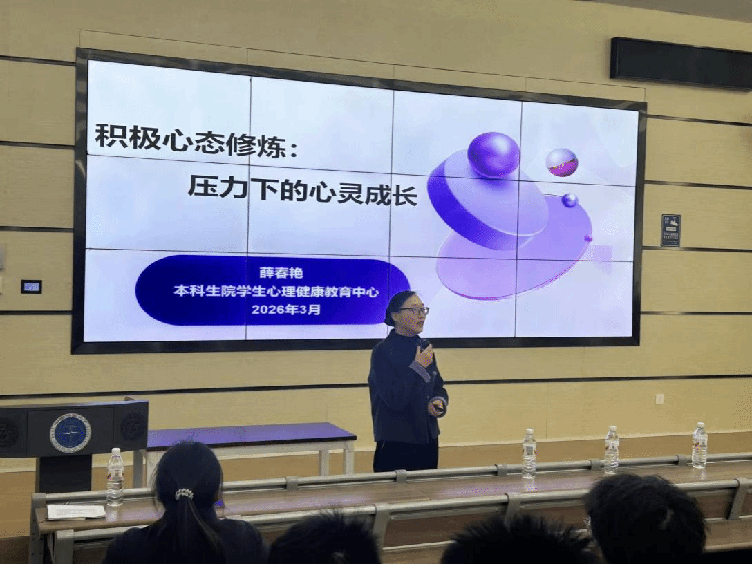 会议开始,心理健康教育中心专职教师薛春艳教授以“积极心态修炼:压力下的心灵成长”为主题开展心理健康教育专题分享,首先通过“切土豆”游戏和同学们互动热场,围绕开学适应及大学生活“躺平与努力”的选择,讲解了压力引发的负面情绪、负面心态及对生理健康的多重影响,并分享了化解压力的实用方法,引导同学们体验大爱、快乐、有用感、意义感四种积极心理。同时通过芳香疗法、身体抚触法等方法进行积极心理培育。帮助大家科学认知压力、掌握情绪调适技巧,以积极阳光的心态面对大学生活。
