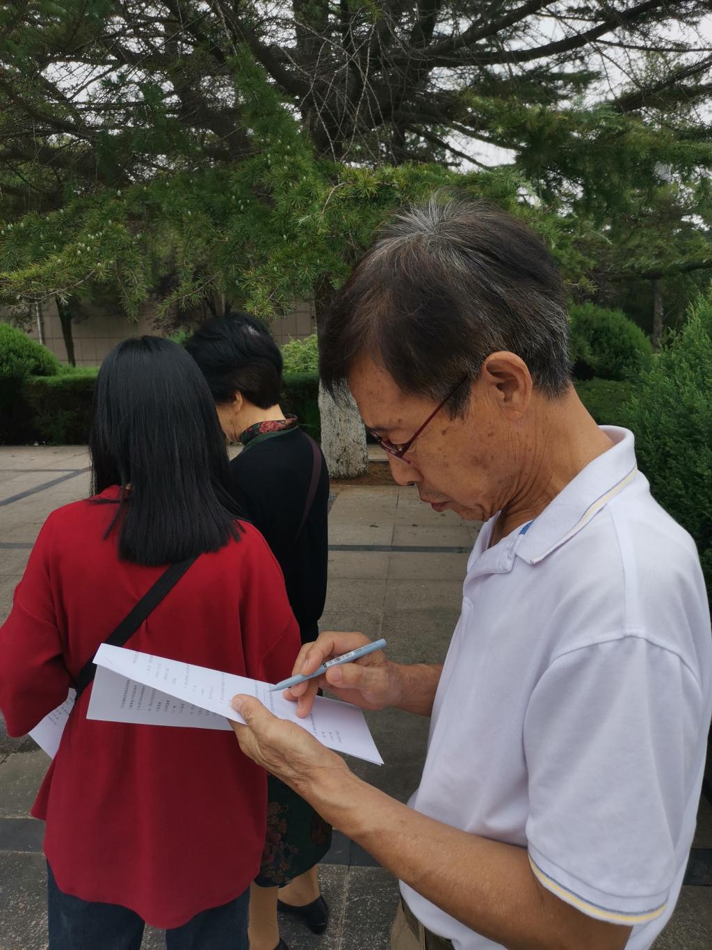 实践团成员在郑州烈士陵园与叔叔阿姨交流并发放问卷