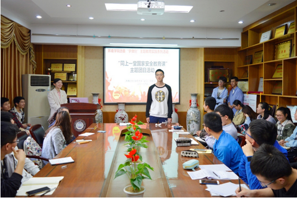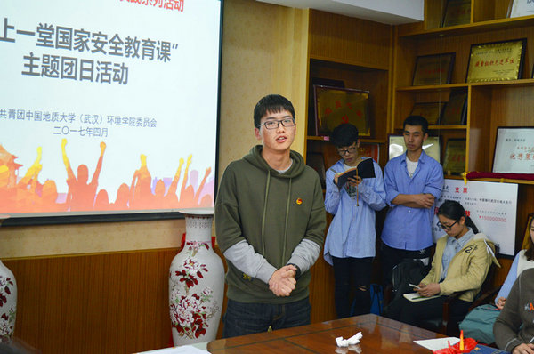 4月15日为全民国家安全教育日。beat365中文官方网站2017年“五四评优”优秀共青团员、优秀共青团干候选人在文华楼201会议室召开“同上一堂国家安全教育课”主题团日活动。