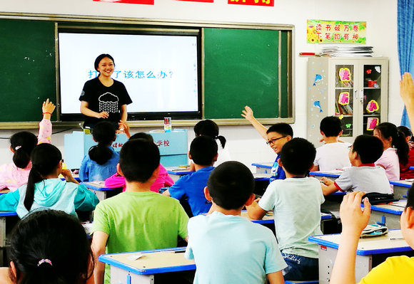 “这个谜语描述的是哪种常见的天气现象?”在地大附小501教室里,小学生们跃跃欲试举手发言,与学院的气象科普志愿者互动,学习氛围十分浓郁。