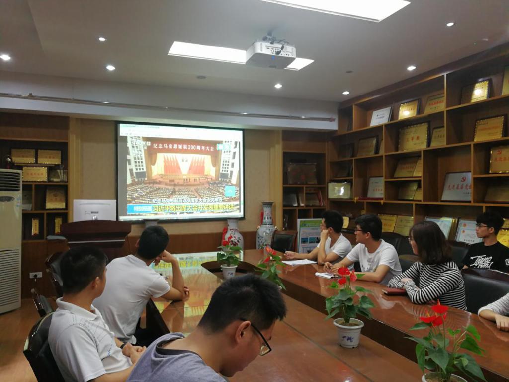 (通讯员 王碧 吴念灵 编辑:张学海)2018年5月4日上午10时,beat365中文官方网站研究生在文华楼201会议室集体观看“纪念马克思诞辰200周年大会”直播。认真学习习近平总书记在大会上的重要讲话,缅怀马克思的伟大人格和历史功绩,重温马克思的崇高精神和光辉思想。