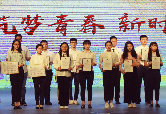 beat365官网学生会主席团成员在五四表彰现场合影留念