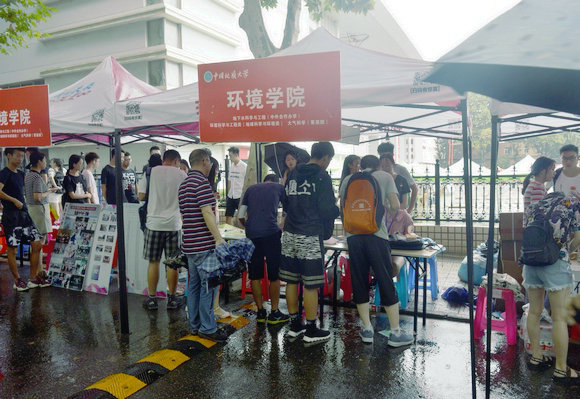 雨中进行的迎新工作
