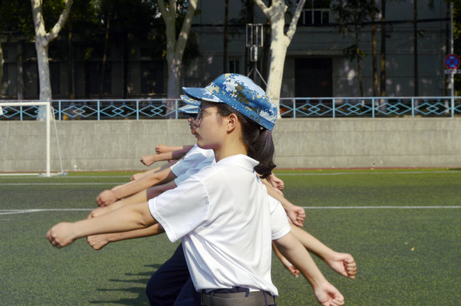 beat365官网学生按照动作规范认真进行军训训练