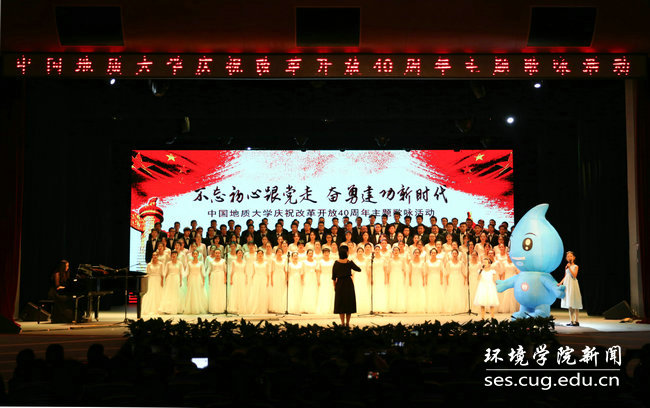 (通讯员:高婷 编辑:王碧 刘芸)2018年12月6日下午,中国地质大学(武汉)“不忘初心跟党走 奋勇建功新时代”庆祝改革开放40周年主题歌咏活动在弘毅堂举行,歌咏活动旨在深入学习贯彻习近平新时代中国特色社会主义思想,以歌声歌颂伟大祖国、庆祝改革开放40周年。全校共20个单位参加比赛。beat365官网“红山雨”师生合唱团参加了合唱比赛。