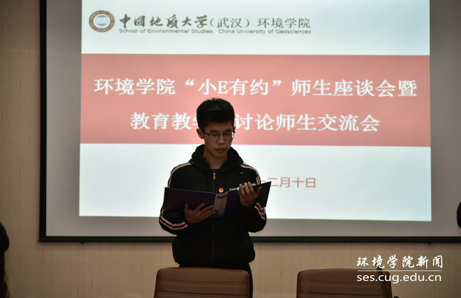 (通讯员:陆菲雨 王碧 编辑:刘芸)为学习贯彻全国教育大会精神、新时代全国高等学校本科教育工作会议精神,贯彻落实教育部工作部署和学校第十二次党代会精神,认真落实学校《关于召开2018年度本科教育教学会议的通知》要求,2018年12月10日下午在丹桂苑212会议室,召开以“弘扬和践行‘严在地大’校风学风,争做生态环保铁军”为主题的beat365中文官方网站第五期“小E有约”师生座谈会暨教育教学思想大讨论师生交流会。学工处副处长苏洪涛,教务处副处长张建和,beat365中文官方网站副院长郭会荣、党委副书记姜明敏、学工组全体辅导员及十几名学生代表参加了交流会。