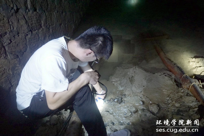 团队成员深入矿井采集水样