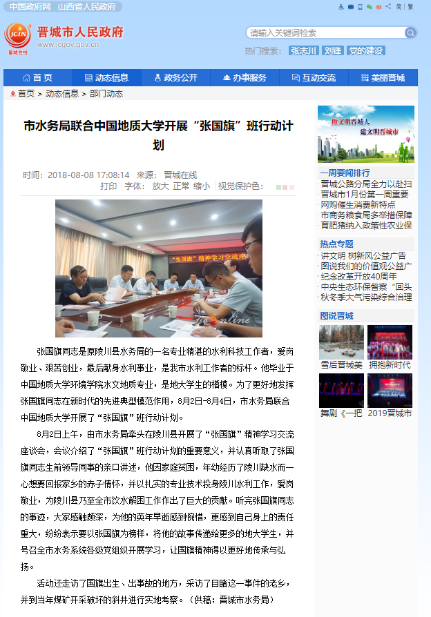晋城市人民政府对本次社会实践报道截图