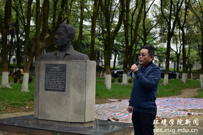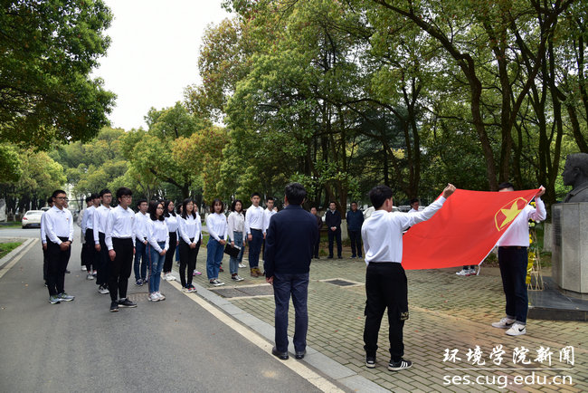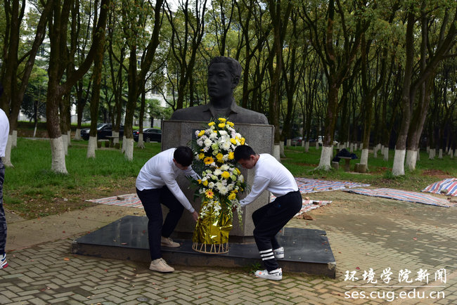 (通讯员 高婷 吴心宇 王碧 编辑 杨馨梦时值清明,春意融融。为纪念我校优秀校友张国旗,学习弘扬“张国旗精神”。4月4日中午,张国旗塑像清明祭扫活动暨“学习张国旗,奋进新时代”主题团日在张国旗塑像旁举行。党委学工部部长邬海峰 , 校团委办公室主任黄蕾,学院党委书记李素矿、党委副书记姜明敏、水资源与水文地质系主任万军伟、团委书记王碧、院团委副书记李平及“张国旗班”团支部全体成员参加本次活动。