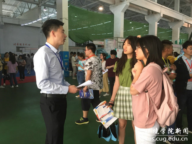 (通讯员 汪静 编辑 陈杰)5月11日上午9点,“中国地质大学(武汉)2019年大学生实习双选会”在北区体育馆举行。学院党委书记李素矿、辅导员王碧、兼职辅导员汪静等赴双选会现场与单位交流,悉心指导学生就业实习。