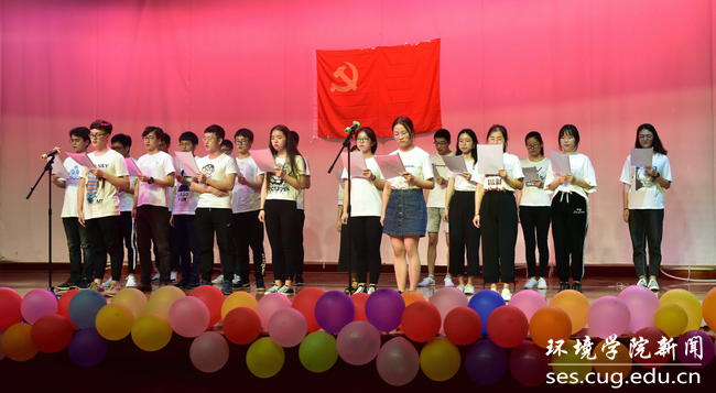 全体师生在学院团委书记王碧的带领下重温入党誓词。