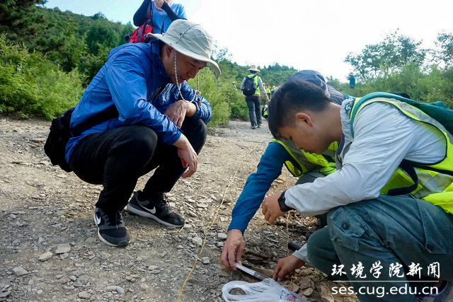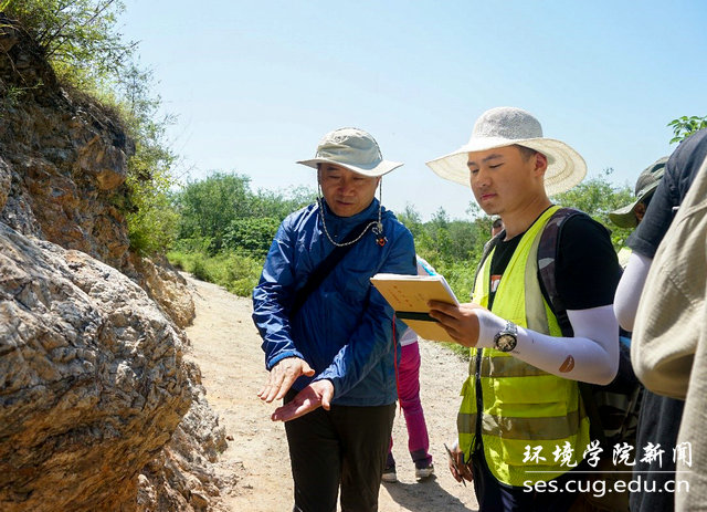 15日至16日,李素矿一行与周口店实习师生一起,完成了房山西断裂与大平山南坡实测剖面两条路线。在野外,李素矿一行与师生亲切交谈,并一起观察地质现象,交流学习心得,分享学习经验。
