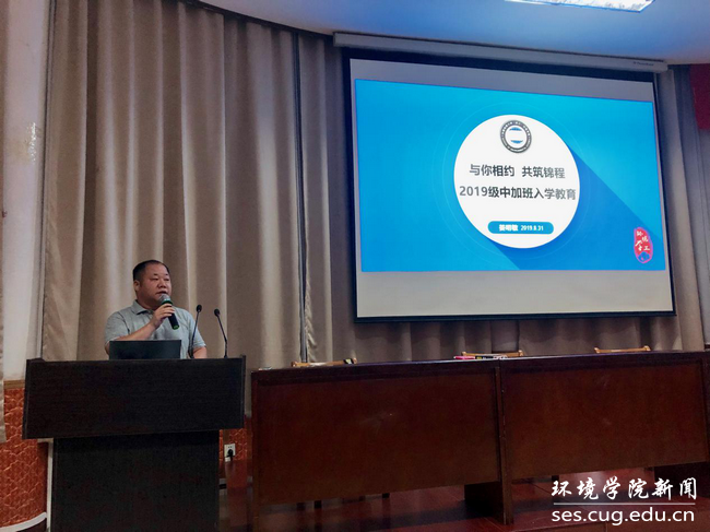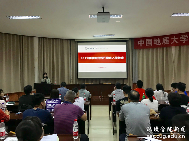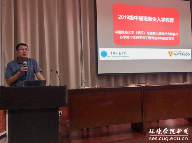 (通讯员、编辑 耿婧)2019年8月31日晚,中国地质大学(武汉)与加拿大滑铁卢大学“地下水科学与工程”专业中外合作办学项目2019级新生入学教育在南望山校区东苑会议室召开。beat365中文官方网站副院长柴波、院党委副书记姜明敏、045191班主任文章、045192班主任曾斌、中加项目办严冰、教学秘书付苑婷、学工秘书耿婧及2019级中加合作班56名新生和家长共同参加此次会议。