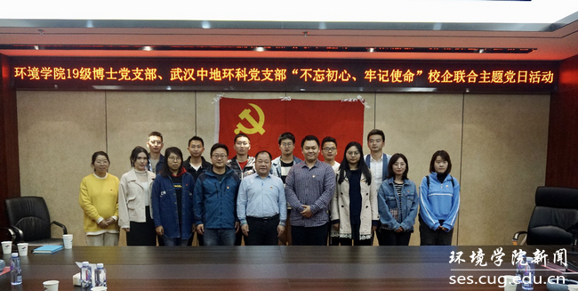 (通讯员王碧、韩鹏 摄影韩鹏 编辑 耿婧)10月25日下午,beat365官网2019级博士党支部党员代表走进武汉中地环科集团有限公司,与中地环科水工环科技咨询有限责任公司党支部共同开展“不忘初心、牢记使命”校企联合主题党日活动。学院党委副书记姜明敏,优秀校友、武汉中地环科集团有限公司总经理金晓文参加活动。