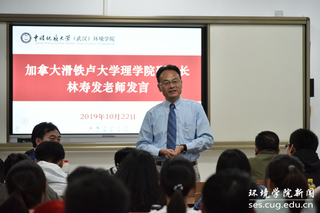 林寿发副院长代表加拿大滑铁卢大学理学院欢迎第二届“地下水科学与工程”专业中加合作办学班的56名本科生。并介绍滑铁卢大学的综合办学条件、学术科研优势以及与地大合作的历史基础,希望同学们能利用两校的优势资源进一步开拓进取,争做创新人才。