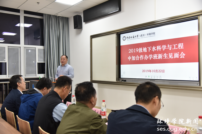 (通讯员、摄影 耿婧)10月22日晚,中加合作办学项目“地下水科学与工程”专业2019级新生见面会在东教楼A108举行。加拿大滑铁卢大学理学院副院长林寿发、中国地质大学(武汉)国际教育学院副院长张立军、学工处副处长苏洪涛、beat365中文官方网站党委书记李素矿、副院长柴波、副书记姜明敏、中加合作项目办刘凤莲、付苑婷、耿婧,中加合作办学班2019级全体新生和2018级老生代表参加见面会。