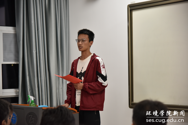 2019级新生代表李天奇发言。他讲述自己选择地大beat365中文官方网站地下水科学与工程的初心,表达了自己努力奋斗的远大志向,勉励同学们不畏将来。