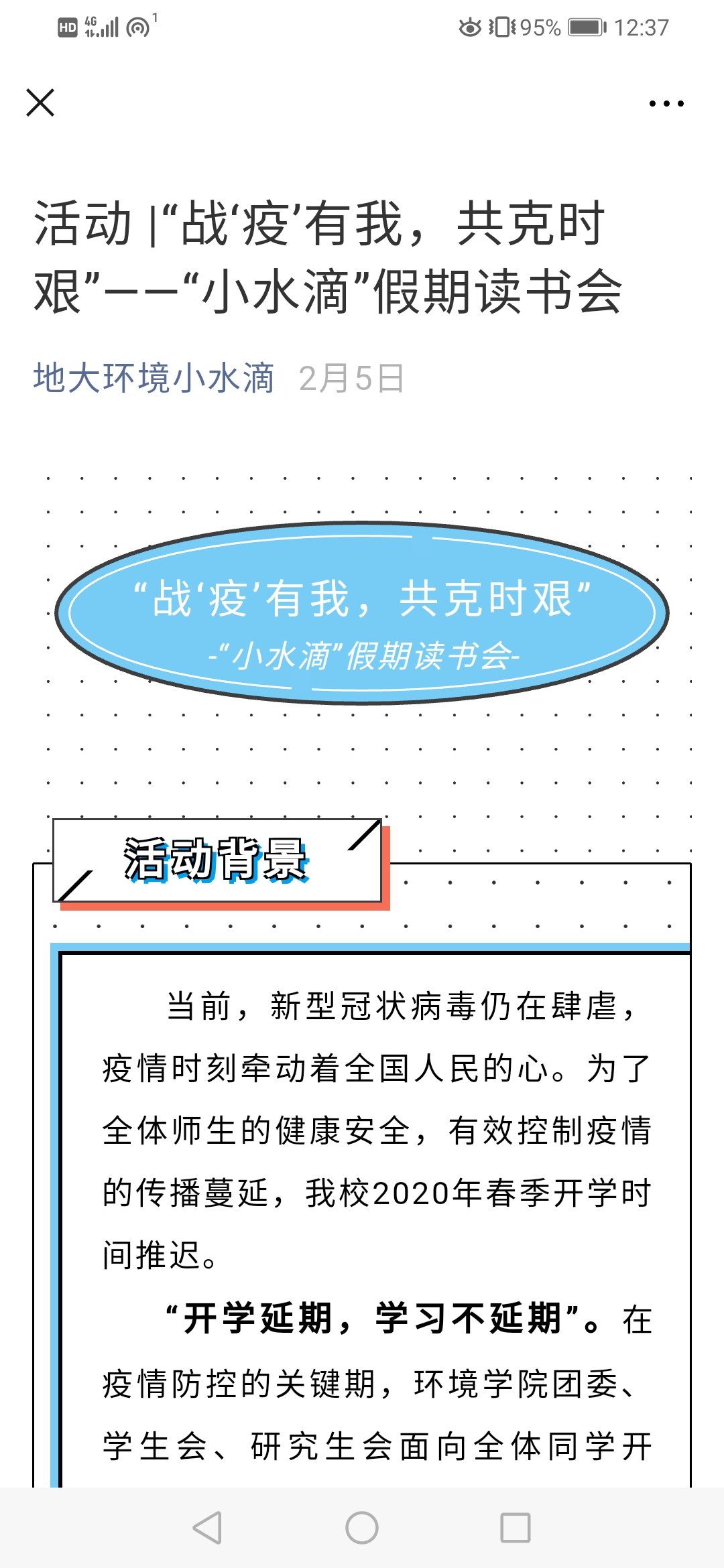 战疫有我,共克时艰--“小水滴”假期读书会