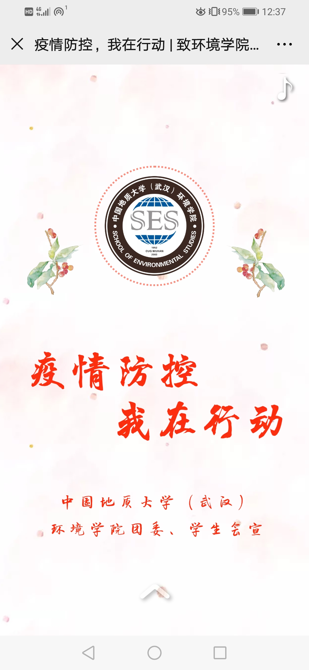 九州同忾战疫情,春暖花开终有时。党建领航、团结一心、班级守底,beat365中文官方网站全体师生与全国人民一道,和衷共济、共克时艰,发挥“金字塔”组织体系效能,推进基层学生疫情防控工作,形成环境学子生态环保铁军合力,为武汉加油、为湖北加油、为中国加油!