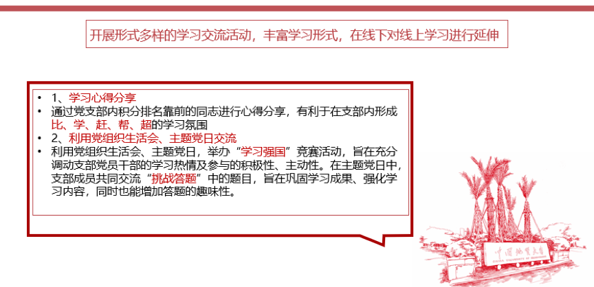 2、党支部内也有同志对在“学习强国”中的学习有些迷茫,不知道应该在上面学习什么内容,难道只是为了“学习强国”内的积分而简单的刷题吗?