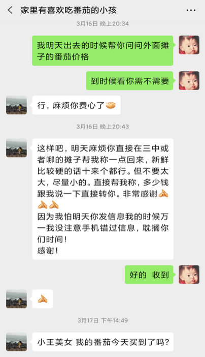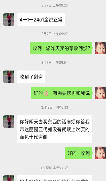 我平时主要的工作是负责采购居民的物资,主要负责三个网格,共计600多户的居民的物资团购,在这次疫情中一共负责团购了20多次,内容从一袋酵母到一袋大米,一桶油。此外,我们还需要满足居民的个性化需求,比如说家里有个爱吃番茄的小孩,团购不能找到合适的套餐,还有24楼家里有胃不舒服的老太太,早起必须吃个面包垫垫肚子。疫情期间大部分商超都关门了,我们会留意这些细节尽量帮他们买到需要的东西。家里有重症患者需要药物的,一旦收到需求,我们就会上门统计他们所需要的药物然后发给其他的志愿者去帮他团购。我的志愿工作开始之后就不断的在走访排查。江夏区是一个离雷、火神山比较近的地方,有非常多雷火神山方舱医院的建设者,他们在结束工作之后会进行居家隔离,我们经常会去到他们家中测量体温、分发温度计、送生活物资。同时我们会协同网格员去到老弱病残孕的家中,把爱心送到他们手中,通过这样走访每一户,帮助排查疑似人员。针对家中独居老人不会使用手机的,我们会上门教授如何购物,如何加入网格群等,认真落实不拉不漏一户不落一人的要求。