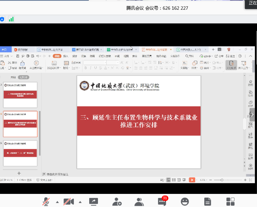 毕业年级辅导员王碧介绍相关专业毕业生就业情况。他说,当前就业形势严峻,就业推进工作时间紧、压力大,就业工作推进须全员参与,从唤醒意识、转变思想、汇聚资源、拓展渠道、精准帮扶等方面下功夫,指导帮助毕业生充分就业、高质量就业。