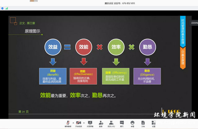 杨琴结合丰富心理健康工作经验,从时间管理的常见问题、如何理解时间管理、时间管理的具体措施等三个维度进行讲授。