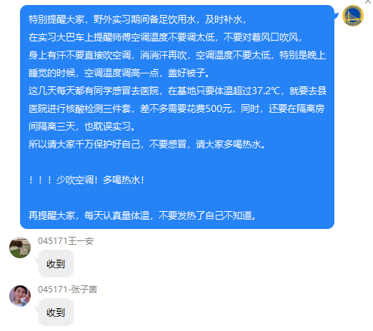 辅导员在学生群发布实习须知