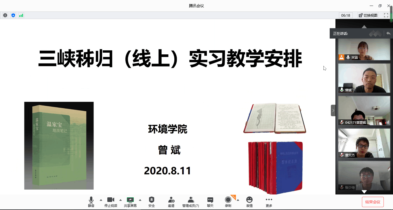 8月16日,学院召开秭归实习线上学习任务布置会,秭归实习队队长曾斌、带队辅导员宋霖以及全体参加线上实习的同学参加会议,实习队队长曾斌主持会议。