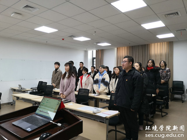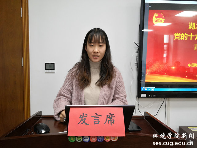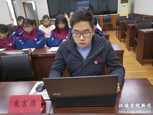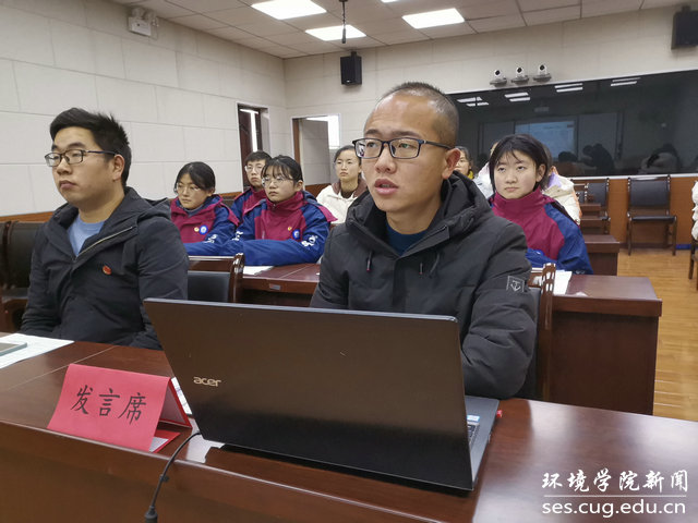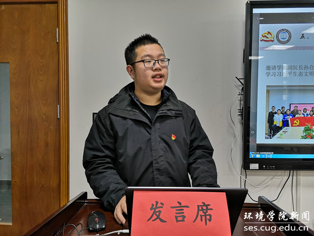 水文专业大学生党支部书记刘傲介绍党支部发展情况。他说,水文支部在beat365中文官方网站党委的正确领导下,致力打造“双创”品牌,在支部党员思想学习、成长发展、科研能力、实践服务等方面实现引领作用:支部曾邀请华中科技大学先进学生党支部,来院介绍典型经验;与教师党支部共同参观中共五大会址,加强师生党建交流;组织支部成员进行咀里湖志愿清扫活动;成立党员帮扶小组,让优秀同志帮扶成绩薄弱同学;学院搬迁期间,组建义务搬迁工作队,帮助女同学搬运行李。最终,在支部成员的共同努力下,支部今年获评校“十佳党支部”。