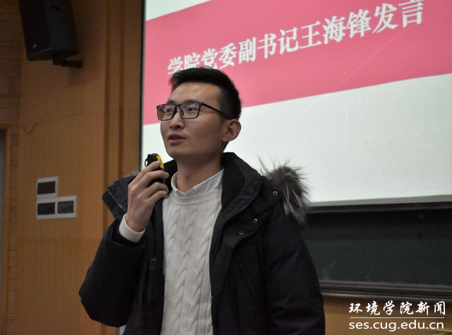 王海锋发言。他强调,同学们应以三位优秀学姐为标杆,以积极健康心态备考,勇于追求学术卓越。他对同学们提出5点希望:一是希望大家阳光快乐。永怀希望,永葆青春活力;二是希望同学们积极健康。发挥自己的特长,弥补自身的短板;三是要有远大理想和抱负,要有精英意识并不懈努力;四是要有本领有担当,良好的品行和扎实的专业知识是立身之本;五是希望同学们戒骄戒躁,沉淀积累,厚积薄发。他代表学院学工组欢迎大家多交流沟通,学工组的全体老师永远是学生前进路上的坚强后盾,全体辅导员将竭力做好学生的成长成才的人生导师和健康生活的知心朋友。