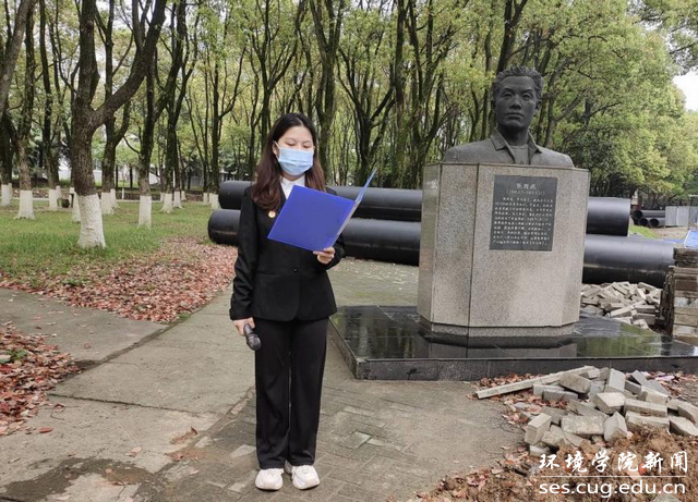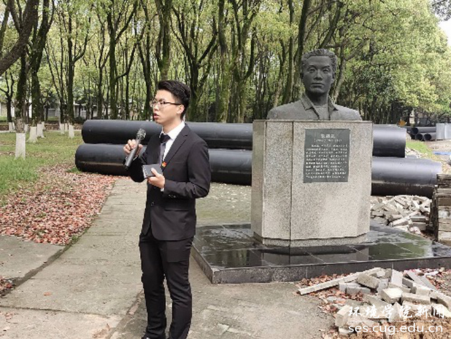 “张国旗班”团支部成员段翔讲述张国旗事迹。张国旗的一生,是找水的一生。在我校以优秀的成绩毕业后,他放弃了优越的工作机会,选择回到自己贫困的家乡—陵川县,投身于解决山区吃水难、找水难的问题,为保护他人奉献出自己年轻的生命。他说到“张国旗的一生虽然只有短短的33年,但他回乡找水的选择,毅然救人的壮举,将永远影响着我们一代一代的地大环境学子。”
