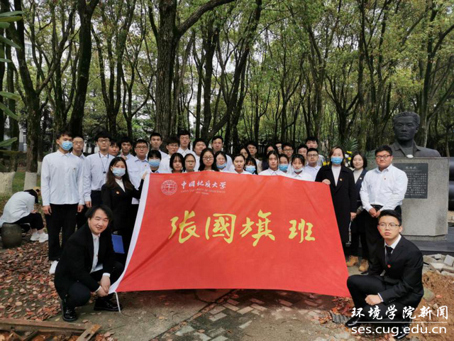 (通讯员赵凡翔、徐溪清 摄影卢逸凡、吴薇 编辑耿婧)时当春光融融,眼尽草木青青,清明节至,日丽风清。为纪念我校优秀校友张国旗,学习弘扬“张国旗精神”,4月4日下午,“张国旗班”团支部组织青年团员来到张国旗雕像前开展纪念张国旗活动,辅导员李平及“张国旗班”团支部全体成员参与活动。活动由薛晴文主持。