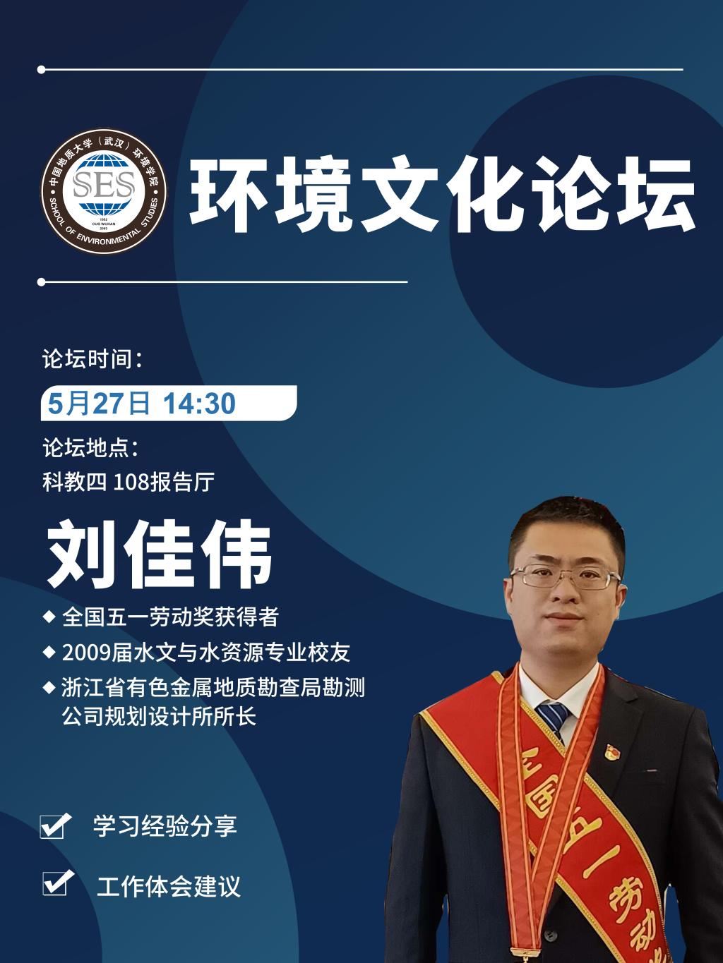 在2021年庆祝“五一”国际劳动节暨“建功‘十四五’、奋进新征程”主题劳动和技能竞赛动员大会中,beat365官网3位校友荣获“全国五一劳动奖章”。本期环境文化论坛,我们诚挚邀请了获奖者之一、来自beat365官网2009届水文与水资源工程专业的刘佳伟校友出席并为同学们分享学习和工作经验。