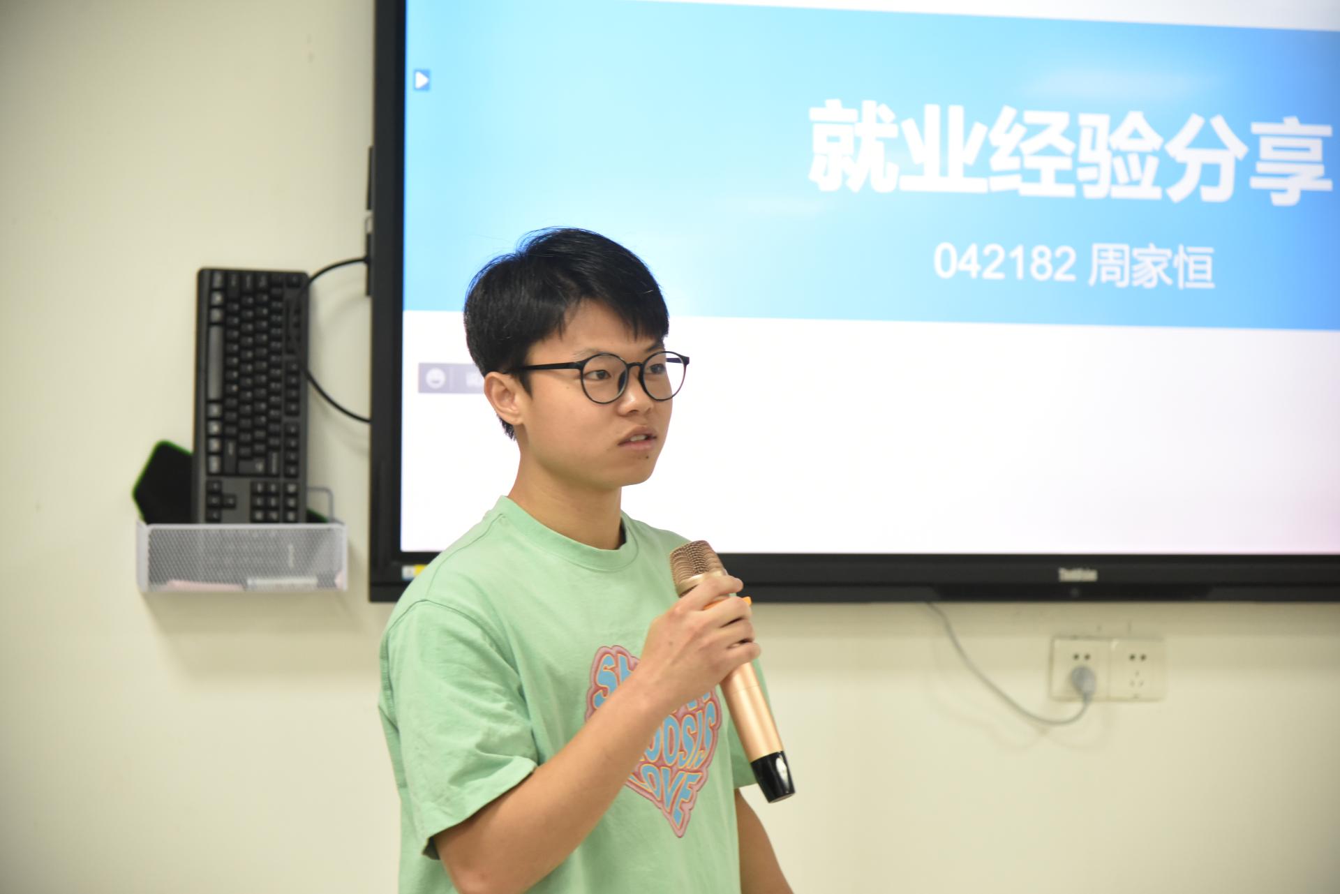 接着,2018级环境工程专业学生周家恒作就业经验分享。他回顾自己的就业历程,建议同学们利用学校就业平台等各类资源及时关注招聘就业信息,及早树立就业意识,努力提升个人素质,练就过硬技能。