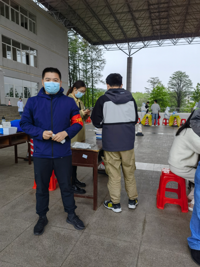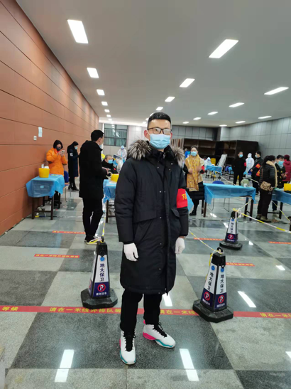 2021级本科生辅导员陈俊男,他的新婚妻子同为武汉高校的一名辅导员,两人因疫情影响聚少离多,婚期在即,因突如的疫情不得不取消周末原本的计划安排,负责学院学生安全稳定的工作他深知学院需要他,他只有舍弃小家,义无反顾冲在一线,在校期间第一时间主动参加全员核酸检测志愿服务中,开学至今已参加9次志愿服务,陈俊男表示:“期盼疫情早日平息,每个小家和大家都能幸福相聚!”