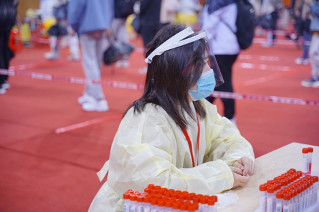“大家做核酸的时候一定要戴口罩!注意保持一米线!”……