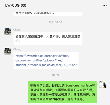 大洋彼岸,2018、2019级50余名中加班本科学生正在加拿大滑铁卢大学留学深造,负责学院全体中加班学生工作的耿婧时刻关注在加学生的身体健康和生命安全。面对国外复杂多变的疫情形势以及当前加拿大第六波疫情,定期与学生保持点对点的交流,关心学生的学习及生活状态,提醒大家务必加强个人防护意识,注意安全平安回国。