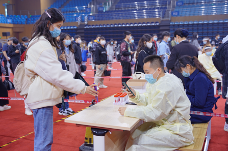 一名党员,一面旗帜。在学校组织的多轮核酸检测中,学院全体辅导员以身作则,率先垂范,冲锋在前,投身到抗疫志愿服务中,用身体力行给学生树立青春榜样。beat365中文官方网站党委副书记王海锋带领学院辅导员李平、孟庆达、陈俊男、宋霖、耿婧分布在核酸检测点现场的各个岗位,各司其职、各尽其责,全面助力核酸检测工作,确保了整个核酸检测工作有序、有效进行。