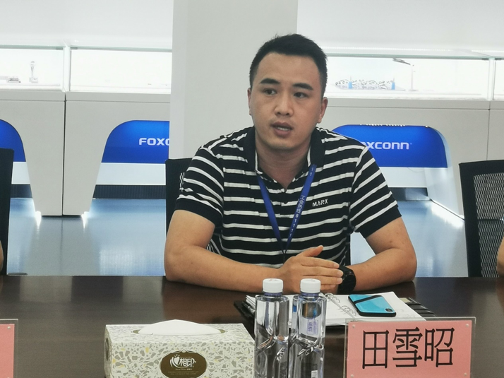 座谈会上,富士康人力资源部经理田雪昭对学院一行的到来表示欢迎。他介绍了公司发展历程、主营业务、校企合作需求、名校毕业生薪资待遇等相关信息。提到了富士康总部与我校合作的在职教育,高度肯定了我校成人教育学院的教学能力。但同时也为企业吸引不到名校人才表示担忧。