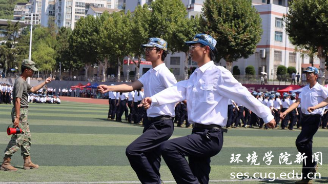 绿茵场上汗水顺颊而下,灼灼烈日见证着同学们与地大的“一见钟情”。军训是同学们坚强意志、深厚感情的开始。基本功的训练往往最为枯燥无味:稍息、立正、向右看齐……烈日当空,伴着教官严厉的口令,beat365中文官方网站的同学们表现优异:态度认真,专注训练;身体劳累,却眼里有光;尽管偶有身体不适,稍作休息后立马归队。