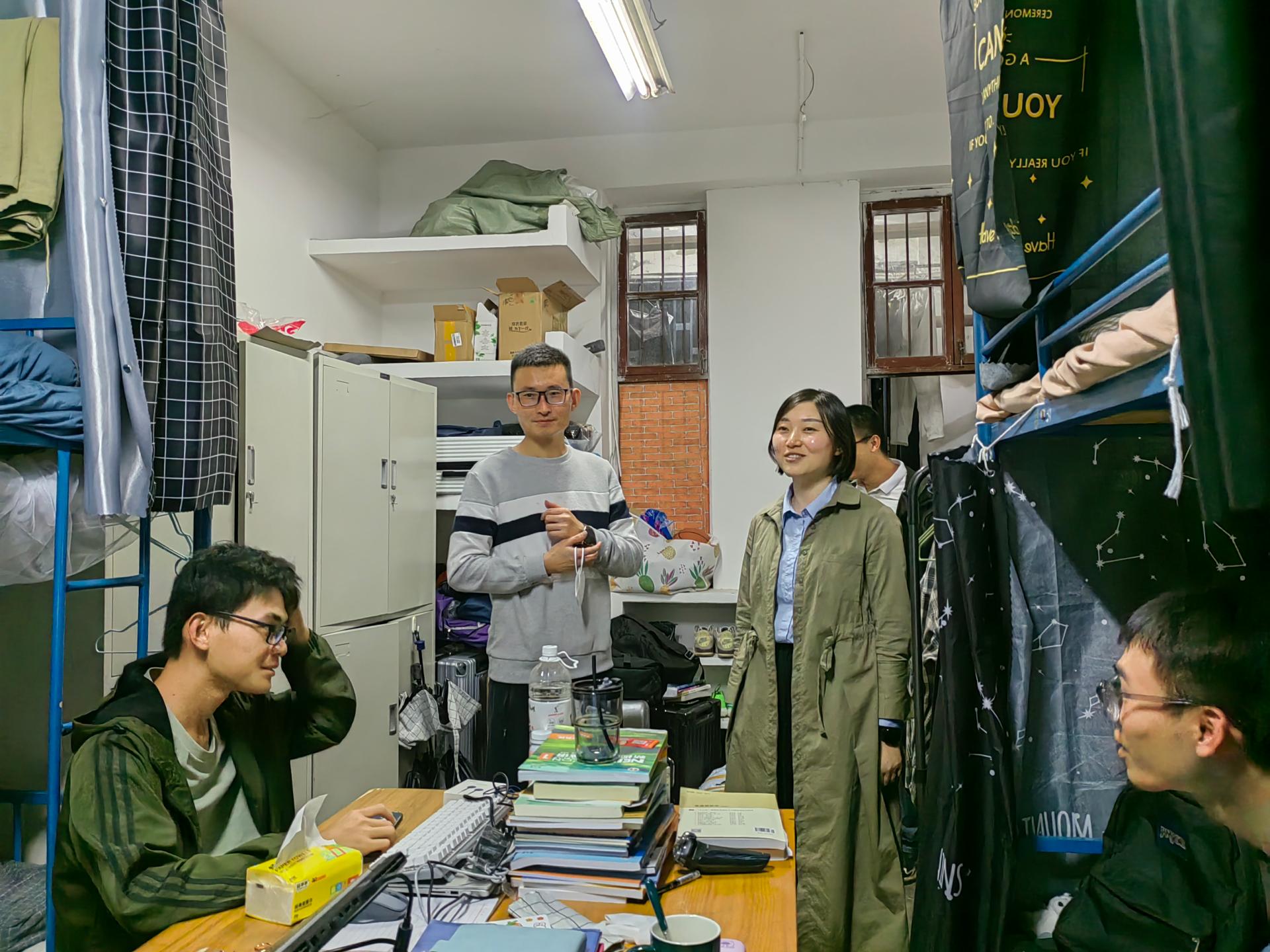 三、学工组辅导员深入走访学生宿舍、实验室,并参与学生活动