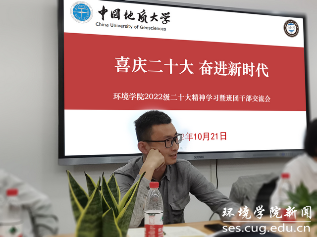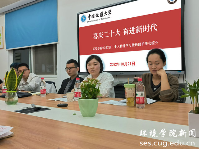 各班班长和团支书依次进行党的二十大学习感想交流分享。04H225班杨凯歌谈到:“对于二十大报告中,关于完成‘脱贫攻坚、全面建成小康社会的历史任务’我深有感触,我父母都是作扶贫工作的,之前忙于工作很少关心我,当时心有抱怨,长大后我才慢慢理解父母的工作,更加引以为豪”。04H223班赵哲说到:“习近平总书记报告中指出‘坚持山水林田湖草沙一体化保护和系统治理’,作为beat365中文官方网站的新成员,我们愿为打好蓝天、碧水、净土保卫战不懈奋斗,争做红专能优生态环保铁军。”