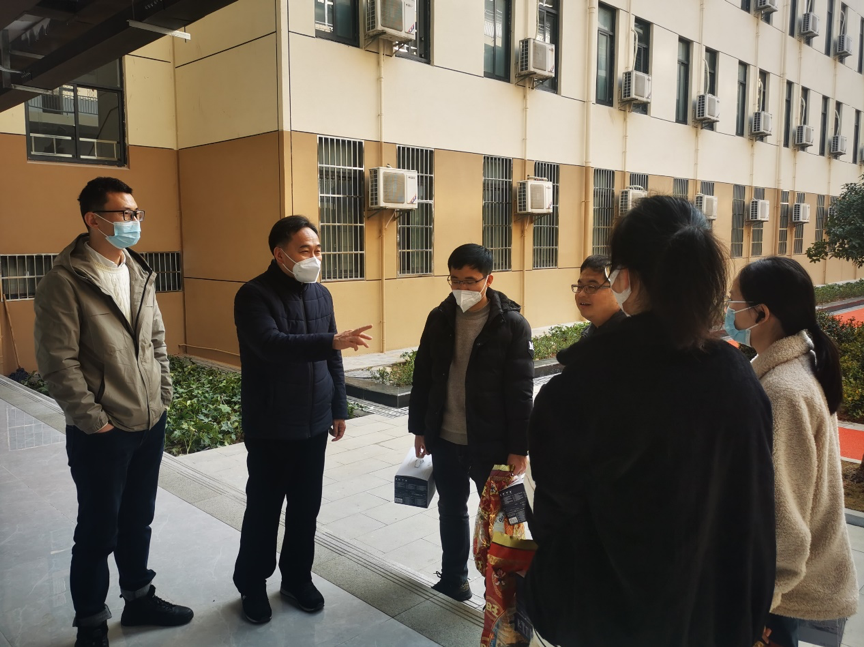禹治红、陈峰、姜思羽是学院硕士毕业年级学生,因为科研等原因申请寒假留校,学院领导关心同学们找工作和毕业论文撰写等情况,勉励同学们合理规划假期,劳逸结合。