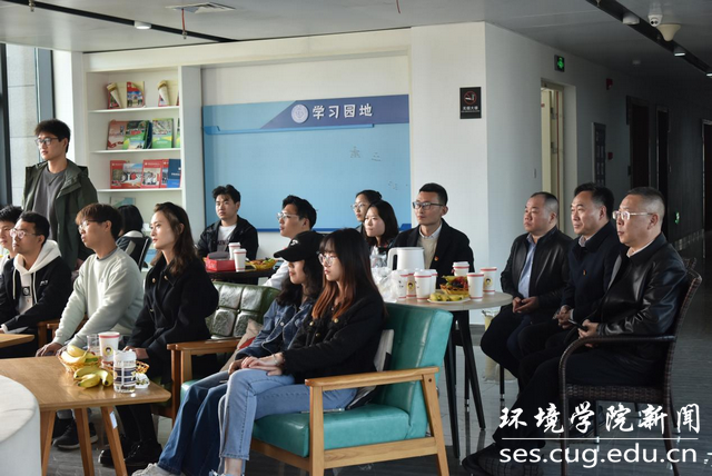 学生代表发言环节,2023届本科毕业生陈鹏飞、“张国旗班”党支部成员张萍萍、绿野仙踪协会地大观鸟兴趣小组负责人林峤涵、学生创新创业团队“炭合团队”负责人华祎梓、“积水团队”负责人邓睿、2023届博士毕业生严璐先后发言。六位同学围绕学习贯彻二十大精神、习近平生态文明思想、专业兴趣爱好、个人发展规划等积极发言。他们表示,要锤炼过硬本领,主动担当作为,用自己专业所学为美丽中国建设做出贡献。
