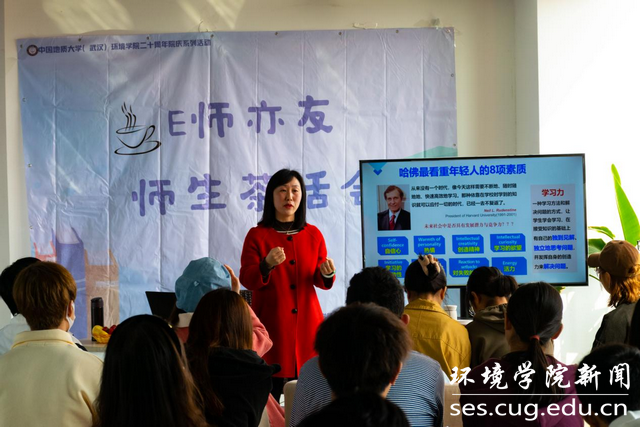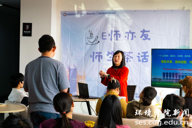 “E师亦友”师生茶话会旨在营造轻松愉快的氛围,为老师和学生提供一个更加自由的交流平台,发挥导师作用,增强导学交流,解决学生学习生活中的实际困难,营造良好的育人环境和生活环境,全面深化“三全育人”综合改革试点,培养全面发展的“红、专、能、优”生态环保铁军。