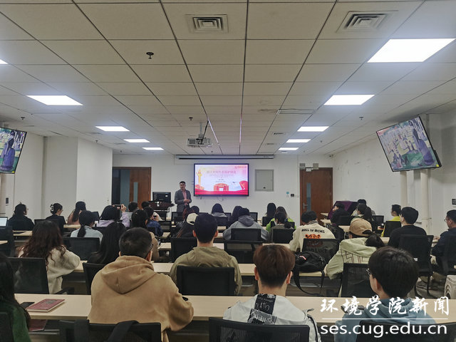 通讯员何骏昊、陈俊男  摄影刘晔  编辑耿婧)按照学校处级及以上党员领导干部、党支部书记讲党课制度,beat365中文官方网站党委制定印发了院领导联系指导学生支部方案。4月6日中午,beat365中文官方网站副院长柴波以“聚焦生态文明建设优化国土空间生态保护修复”为主题为地下水专业本科生党支部、2022级博士研究生党支部以及第28期发展对象培训班讲授专题党课。本次党课在环境楼347举行,党建辅导员陈俊男,学生党支部全体党员及培训班全体学员参与学习。